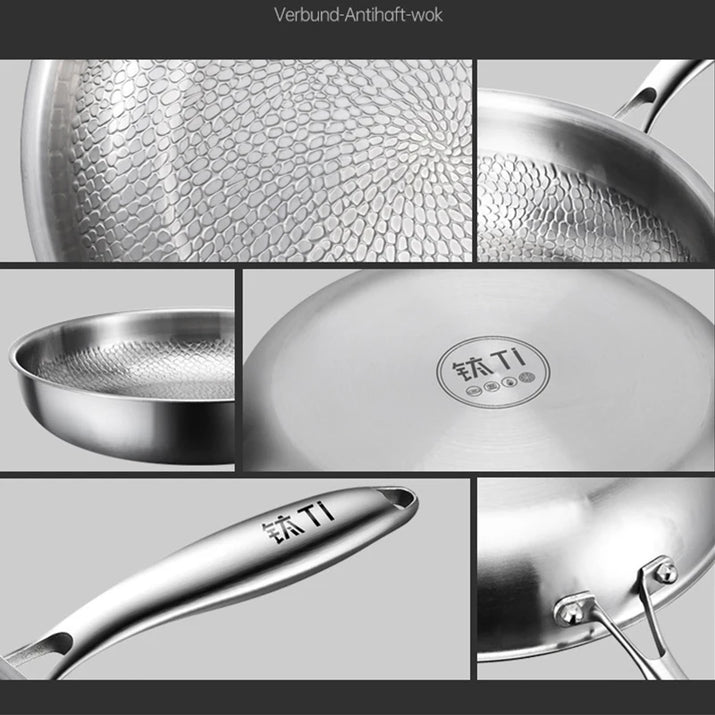 Our frying pans are crafted from pure German titanium, ensuring exceptional durability and resilience. This material guarantees even heat distribution, allowing you to cook with precision and elevate your culinary creations effortlessly.